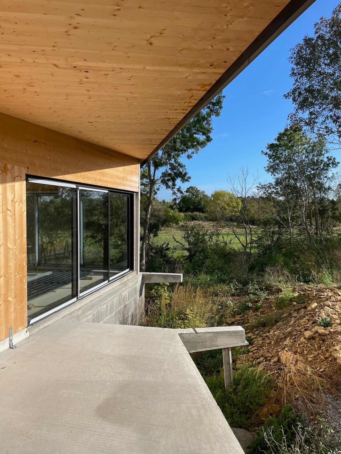 Nos clients ont entrepris un projet audacieux d'auto-construction d’une maison neuve sur un terrain au contour unique : une forme triangulaire qui a donné naissance à notre défi passionnant.